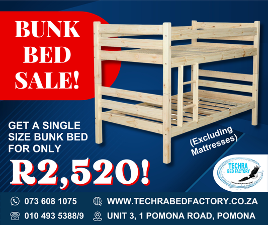 Vendor:Techra Bed Factory - Bunk Bed FramesRegular price R 2,520.00 ZARRegular priceUnit price / perR 2,799.00 ZARSale price R 2,520.00 ZARSale