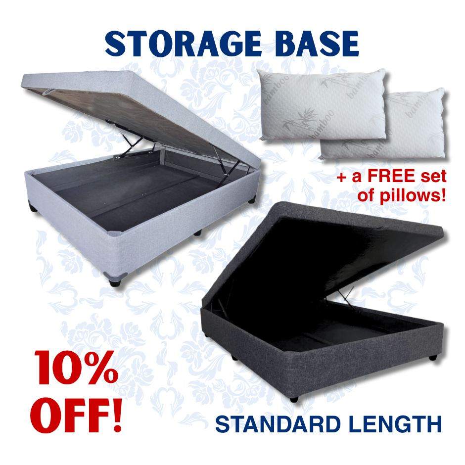 - King: Choose between 2 x (910 x 1880 x 420) Single storage bases or 1 x (1830 x 1880 x 420) Solid Base
